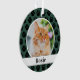 Retrouvez sur votre sapin de Noël les membres de votre famille en peluche ! Ce design ornemental à motif empreinte de patte festif présente un design monogramme moderne qui peut être personnalisé avec votre nom de chat (ou de chien) et leur photo. Chasseur vert et blanc avec empreintes de pattes noirs. Conseil photo : recadrez votre photo au format carré avant de la télécharger sur le site.