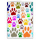 Des images d'empreintes de pattes de chiens partout. Design de dessins animés colorés. Cartes de voeux personnalisées pour les fêtes et événements pour chiens.