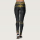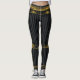 A black, grey and gold luxury pair of leggings featuring a black and grey stripe with gold chains embellishments.