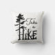 Un oreiller à jetons avec un design de typographie nature en silhouette avec les mots "Prenez une randonnée", agrémenté d'un pin, d'un oiseau et d'une pelouse. Un grand cadeau pour les randonneurs et autres personnes de l'extérieur!