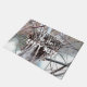 Empty birds' nest perched in a birch tree with text that reads "welcome to the empty nest" but feel free to change or remove if you like.