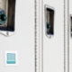 Front view of empty leather turquoise coloured box for jewellery or gifts on white background