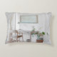 EMPTY DESK NEAR CURTAIN ACCENT PILLOW