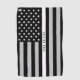 This golf towel features a black, grey, and white thin white line American flag perfect for EMS and EMT first responders. Personalize by replacing the sample name with your own name. Makes a great gift for golf lovers.