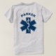 Great shirt for paramedics, EMT's and EMS A-EMCA or anyone in medicine and first response. Blue star of life with Rod of Asclepius. Front and back designs. Personalize with your own name.