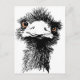 A delightful pen and ink rendering of an emu head on with only the eyes coloured in bright golds. The face of this emu will bring a smile to anyone.