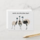 The message on the front of this postcard can be customized with your own greeting. The text appears above realistic style illustrations of three emus. The reverse side of this postcard is blank so that you can write in your own message.