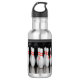 Une bouteille d'eau avec l'image d'un rack de broches de quilles.