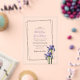 Cet élégant design floral présente des iris violets. Les magnifiques iris violets aux tiges vertes sont placés sur une bordure géométrique mince. Les noms de la mariée et du marié sont assortis au violet de la fleur d'iris. Une image plus grande des élégantes fleurs d'iris est utilisée à l'envers. Il s'agit de l'élégant design floral mariage idéal pour n'importe quel thème mariage. Design élégant de faire-part de mariage de fleur iris avec des éléments modernes. Des articles de papeterie mariage correspondants et d'autres formats d'invitation de mariage sont également disponibles.