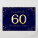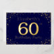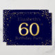 60e anniversaire invitation à la fête. Personnalisez avec le nom de la personne d'honneur. Le numéro 60 dans une grande police de style étincelant. Encadré de points dorés en chute. Placé sur un bleu foncé très saturé. Entrez les détails de la fête au verso de l'invitation en utilisant les modèles, également envoyé sur bleu foncé encadré de diamants.