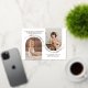 Une invitation conjointe moderne à l'anniversaire avec 2 de vos propres photos en forme d'arcade. Le texte du titre est courbé autour des photos avec des étoiles, imprimées en papier or réel.
