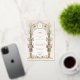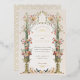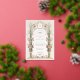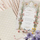 Cette faire-part de mariage est une toile romantique peinte dans les tons doux d'un jardin anglais. Les fleurs de carnation rose, corail et ivoire descendent en cascade les urnes dorées ornées, symbolisant la croissance et la floraison de l'amour. L'arcade fleurie, ornée d'une végétation délicate, encadre les initiales du couple dans un style victorien traditionnel, créant une entrée accueillante pour la célébration de l'unité. Ci-dessous, une scène pittoresque se déroule avec une famille d'oiseaux, faisant écho au thème de la convivialité. Ce design saisit l'essence de l'élégance intemporelle, parfaite pour le couple qui souhaite associer le charme classique d'une époque révolue à la joyeuse promesse de leur avenir ensemble.