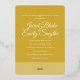 Considérez-vous le jaune comme une couleur focale pour votre mariage ? Améliorez vos invitations de mariage avec cette invitation de papier peint jaune et or doux. L'avant de la carte présente un design de fleurs simples avec le nom et la date du mariage du couple. Le dos de la carte contient les détails du mariage. Couleurs jaune et or doux. Utilisez le modèle pour personnaliser.