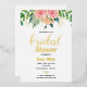 Invitation à la douche nuptiale fleurie en feuille d'or. Floral en feuille d'or avec fleurs d'or, feuilles d'or, fleurs et feuilles, agrémenté de touches roses en feuille d'or. Personnalisez avec vos détails de douche nuptiale.