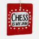 "Chess Is My Jam" est un design de texte amusant avec une forme d'accent blanc entourée de points blancs texturés.