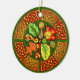 Une frontière celtique de knotwork dans des oranges et des jaunes d'automne entoure un centre de chêne, de houx, et de feuille d'érable dans diverses couleurs de chute, avec des vignes d'enroulement et des spirales décoratives !