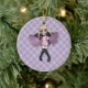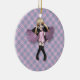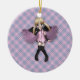 Cet ornement a un petit ange blond mignon d'anime de chaque côté de lui dans des poses légèrement différentes. Elle est sur un arrière - plan rose et pourpre de plaid.