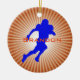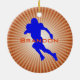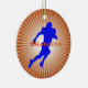 American Football Player Design Ornament avec une silhouette de joueur bleu sur un arrière - plan starburst orange avec personnalisation personnalisable à l'avant et à l'arrière.
