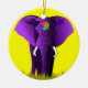 Un éléphant mauve avec le symbole OM se dresse sur l'herbe avec un arrière - plan jaune. Ne sous-estimez jamais un éléphant. Certains pensent qu'ils sont un symbole de bonne fortune