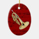 Mellophone de fanfare avec l'arrière - plan de musique de feuille. Utilisez le bouton de "personnaliser" pour éditer et sélectionner votre couleur d'arrière - plan, pour ajouter vos propres images et/ou texte supplémentaires, et pour sélectionner votre forme et style. Masquez du verso pour votre propre personnalisation.