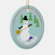 Snowman déblaie la neige en portant son chapeau haut. Les pins sont dans l'arrière - plan. Le globe 3d se distingue par son arrière - plan bleu. À l'arrière, personnalisez le texte "Joyeuses fêtes" en passant à l'année correcte (2012 est par défaut).=