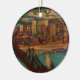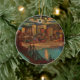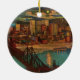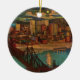 Carte postale vintage montrant le centre-ville de Pittsburgh au clair de lune en 1931 avec vue sur la rivière Monongahela, un pont ferroviaire le traversant et les bâtiments du centre-ville illuminés la nuit. Réimprimé sur ce magnifique ornement de Noël.