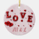 En Céramique Ruby Cristal Amour et Coeurs Ornement initial
