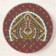 Une dinde masque un élégant mandala thématique Thanksgiving, avec des motifs amérindiens et des icônes modernes dans les tons rouge, jaune et orange pour l'automne.