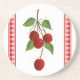 Ce Dessous de verre de cerises présente une impression d'une peinture acrylique originale de cerises avec en vichy contrôle sur les côtés.