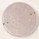 Couvre-trou en fer avec cercles concentriques divisés en segments à tarte.