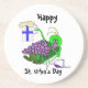 Voici une autre de nos créations pour la Saint-Urho. Celui-ci est d'une sauterelle ivre ou ébriquée. Il a bu trop de bière et de vin, tout en mangeant les raisins ! Comme il est l'origine du finnois, nous avons aussi inclus l'emblème du drapeau finlandais sur le stein de la bière. Vous pouvez également customiser cet élément. Faites cela, cliquez simplement sur "Personnaliser", puis la zone à laquelle vous voulez ajouter quelque chose. Cliquez sur "Ajouter du texte" et insérez ce que vous voulez. Utilisez le "F" pour modifier les polices. Un menu déroulant avec beaucoup d'options apparaîtra. Cliquez sur celui que vous voulez, puis sur "Fermer". Pour modifier la couleur de la police, cliquez sur la zone. La St. Urho's Day est le 16 mars, la veille de la St. Patrick's Day. Pour en savoir plus, visitez notre site Web à http://www.brownielocks.com/urho.html