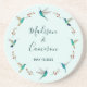 Dessous de verre personnalisé avec une couronne d'aquarelle de colibris et branches botaniques sur un arrière - plan bleu clair. Vous pouvez modifier la taille et le style de police en cliquant sur "Modifier à l'aide de l'outil de conception". Toutes les images de colibris sont tirées des aquarelles originales de C. Dobbins.