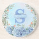 En Grès Dessous de verre rond Blue Hydrangea Monogram