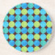 Un Dessous de verre de grès rond qui attire l'oeil, avec un motif en grille de Cercles Turquoise, Bleu Éblouissant, Emeraude et Vert Neon sur un arrière - plan noir que vous pouvez facilement changer avec - Royal Blue et Blanc ont tous deux l'air bon. Une partie de la collection Posh & Painterly 'Blue Moons', basée sur un collage de papier peint à la main par Judy Adamson.