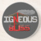 Ce dessous de verre de boisson comprend l'expression "Igneous is Bliss", une géologie qui s'inspire de l'expression commune "Ignorance is Bliss". Les lettres sont dessinées sous la forme de roches grises et de mousses de magma rouge, cristallines, sous un volcan actif en éruption.