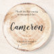 Nous avons vraiment aimé avoir des cadeaux personnalisés à chaque table d'hôtes. Avec la belle rustique mariage que les gens m'ont demandé, le thème du bois a continué à me venir à l'esprit. J'ai conçu ce dessous de verre avec un disque de bois coupé pour vous permettre de personnaliser le nom de votre invité et de servir de cadeau en même temps. Imaginez qu'ils arrivent à leur table pour les accueillir. (le grain de bois est imprimé sur le dessous de verre rond)