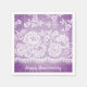 Elégant design de dentelle blanche avec frange sur arrière - plan floral en relief violet pour une fête d'anniversaire.