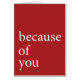 en raison de vous… J'ai trouvé mon soulmate. J'ai reçu un diplôme l'université. Je suis devenu une meilleure personne. J'ai trouvé l'amour. Il y a des centaines de manières de finir ce message simple. L'intérieur est vide pour que vous décidiez votre fin.