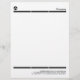 Un modèle en en-tête de lettre Business avec deux lignes réparties en trois sections. Ces lignes sont placées en haut et en bas à 1,5 pouces et ont des marges de 0,5 pouce. Un petit logo décoratif (qui peut être remplacé par votre propre logo ou un autre symbole) est placé à gauche, avec le nom de l'entreprise sur la droite au-dessus de la ligne supérieure. E-mail, adresse web et coordonnées téléphoniques sont placés à 0,5 pouce du bas. Ce design professionnel simple mais attrayant peut être customisé de plusieurs façons.