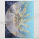 Un univers fantasque et mystique nebula or crescent lune et rayons ondulés soleil mandala céleste design, avec un croissant scène lune brillante avec des fleurs de mandala et nuit bleu nebula galaxie étoiles, points, cercles formes géométriques, échelle de sirène, et rayons ondulés soleil mandala, art doodling floral et feuille, fait avec une texture d'or jaune faux, arrière - plan bleu ciel clair. Cette magnifique, mystique, mignonne lune, et soleil style mandala univers, oeuvre d'art original est parfait pour la décoration maison, l'usure quotidienne, occasion spéciale ou décorations thématiques.