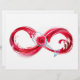 Infinity symbole of continuous stream of red pouring into glass glass glass on white background.
