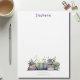 Elevate your correspondence with this Personalized Stationery Letterhead Paper featuring Purple & Green Watercolor Plant and Book Clipart. Each page showcases elegant purple and green watercolor plant illustrations and charming book clipart at the bottom, adding a professional yet artistic touch to your letters, notes, and business communication.