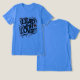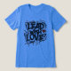 Le t-shirt présente l'expression plomb avec amour dans des lettres capitalisées en gras. Le design probable massage de la compassion.