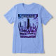 T-shirt graphique avec la ligne d'horizon de Chicago Illinois. Couleurs noires et violettes. Le devant de la chemise tricolore a la ligne d'horizon de Chicago. Customisez le dos avec votre nom ou votre texte. Utilisez le modèle pour créer votre propre t-shirt graphique personnalisé. Grand t-shirt pour hommes, femmes et enfants.