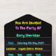 Cartons d'invitation pour soirée néon/fluorescente, RSVP à détacher, personnalisables pour une livraison facile.