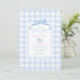 Faites-vous plaisir avec notre délicieuse invitation, avec un motif bleu en vichy cottage. Cette pièce élégante présente un arc coquette et un charmant cheval à bascule. Parfaitement conçue pour donner un ton sophistiqué à votre événement, cette invitation ne se contente pas de transmettre votre joyeuse occasion mais ajoute une touche d'élégance intemporelle que vos invités adoreront. Faites votre baby shower inoubliable avec cette magnifique invitation qui reflète à la fois le style et la grâce.