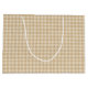 Sac cadeau avec motif classique en vichy en crème, beige et bronzette. Ce sac cadeau moderne et tendance ajoute une touche sophistiquée à toute occasion, que ce soit pour Noël, anniversaires, mariages, anniversaires, diplômes, baby showers, ou toute célébration spéciale que vous avez en tête. Découpez la présentation parfaite avec des rubans assortis, étiquettes cadeaux, sacs cadeaux, papier mouchoir, autocollant et plus encore de Wrapping Station. Découvrez nos classiques intemporels et nos styles modernes audacieux pour améliorer votre expérience de don.
