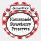 Ajoutez votre touche personnelle à votre confiture maison ou à votre confiture de fraise pour petite entreprise, confitures ou produits de confiture, ou customisez ce étiquette avec votre propre texte de produit. Caractéristiques plaid check en vichy arrière - plan en blanc et rouge avec ruban comme du texte étiquette, comme un produit de marque de nom. Utilisez un grand autocollant pour le côté du bocal standard ou du couvercle du bocal à grande bouche, et utilisez un petit autocollant pour les couvercles ordinaires.