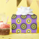 Wrapping paper with a seamless modern geometric flower pattern in the colours of the non-binary pride flag; a purple, yellow, white, and black enby pride design