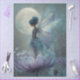 This enchanted blue fairy watercolor illustration features a delicate fantasy fairy standing on a softly glowing flower beneath a bright full moon. The artwork uses layered watercolor texture and gentle luminous detail, with a calming palette of blue, lilac, and misty silver tones. The overall mood feels peaceful and magical, making it a lovely fit for fairy and fantasy art lovers, cozy room décor, stationery, and creative paper craft projects. The soft color story also works especially well for themed journals, junk journal spreads, and decorative art pieces.